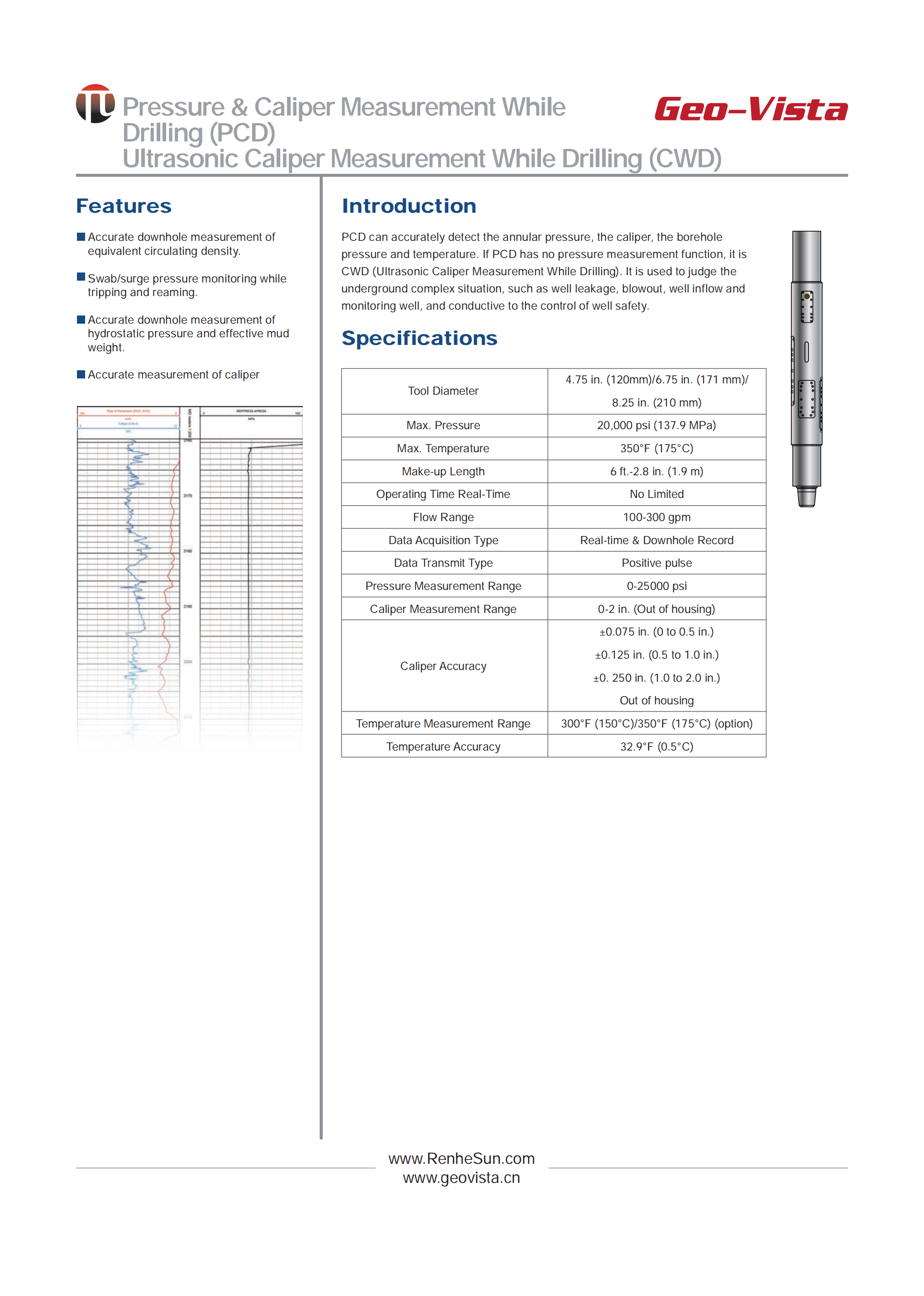 Pressure & Caliper Measurement While Drilling (PCD)/Ultrasonic Caliper Measurement While Drilling (CWD)