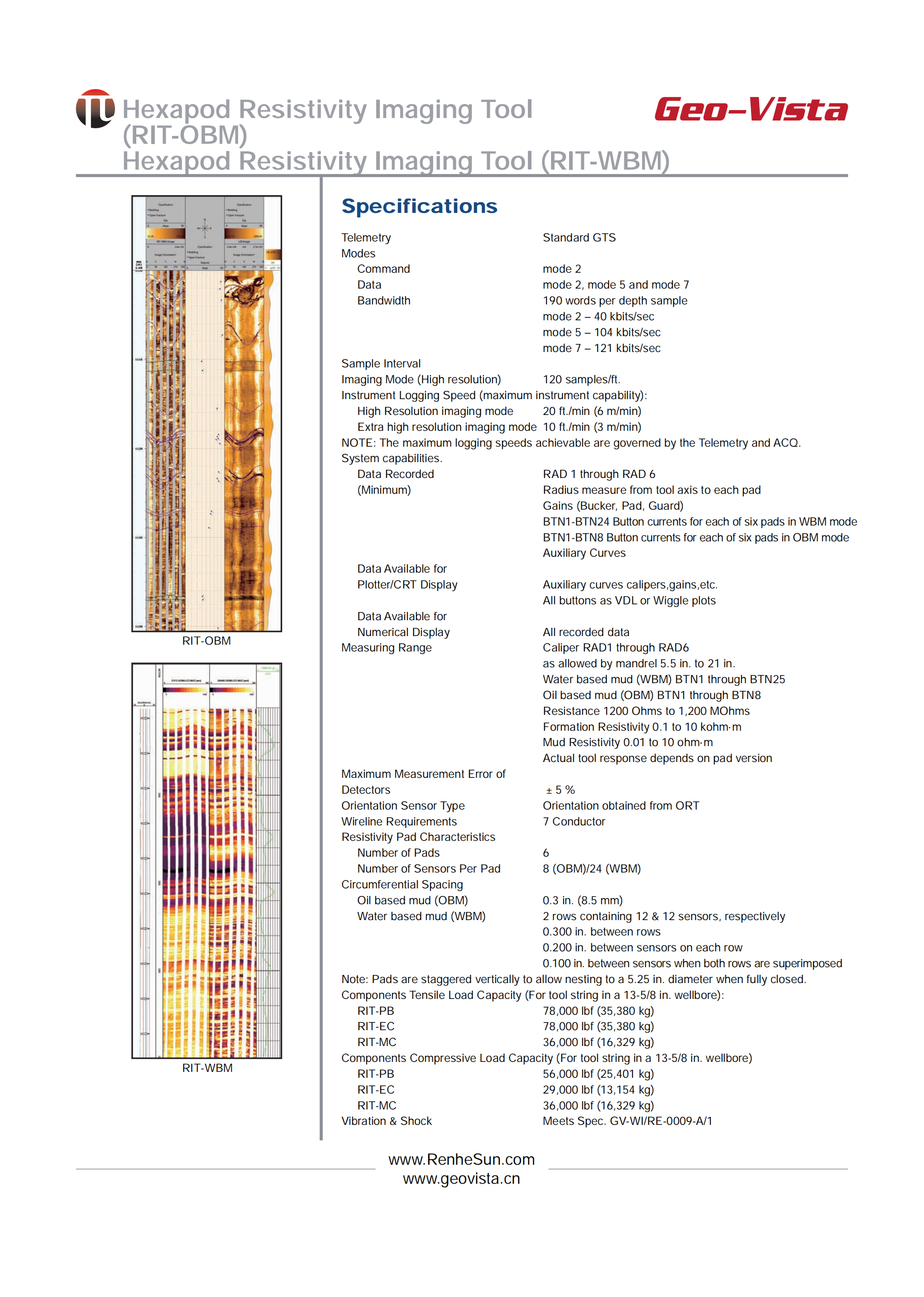 Hexapod Resistivity Imaging Tool (RIT-OBM)/Hexapod Resistivity Imaging Tool (RIT-WBM)