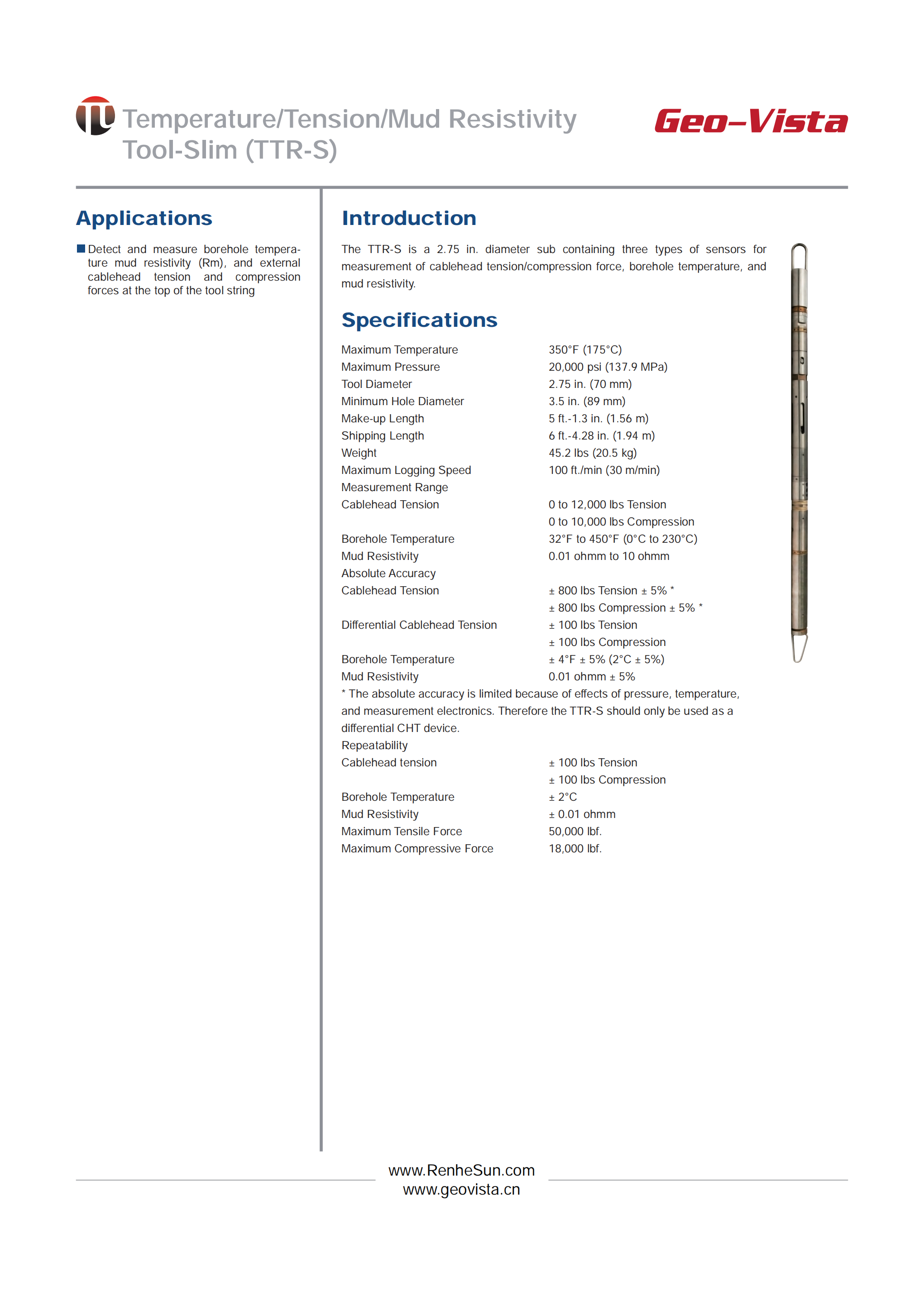 Temperature/Tension/Mud Resistivity Tool-Slim (TTR-S)